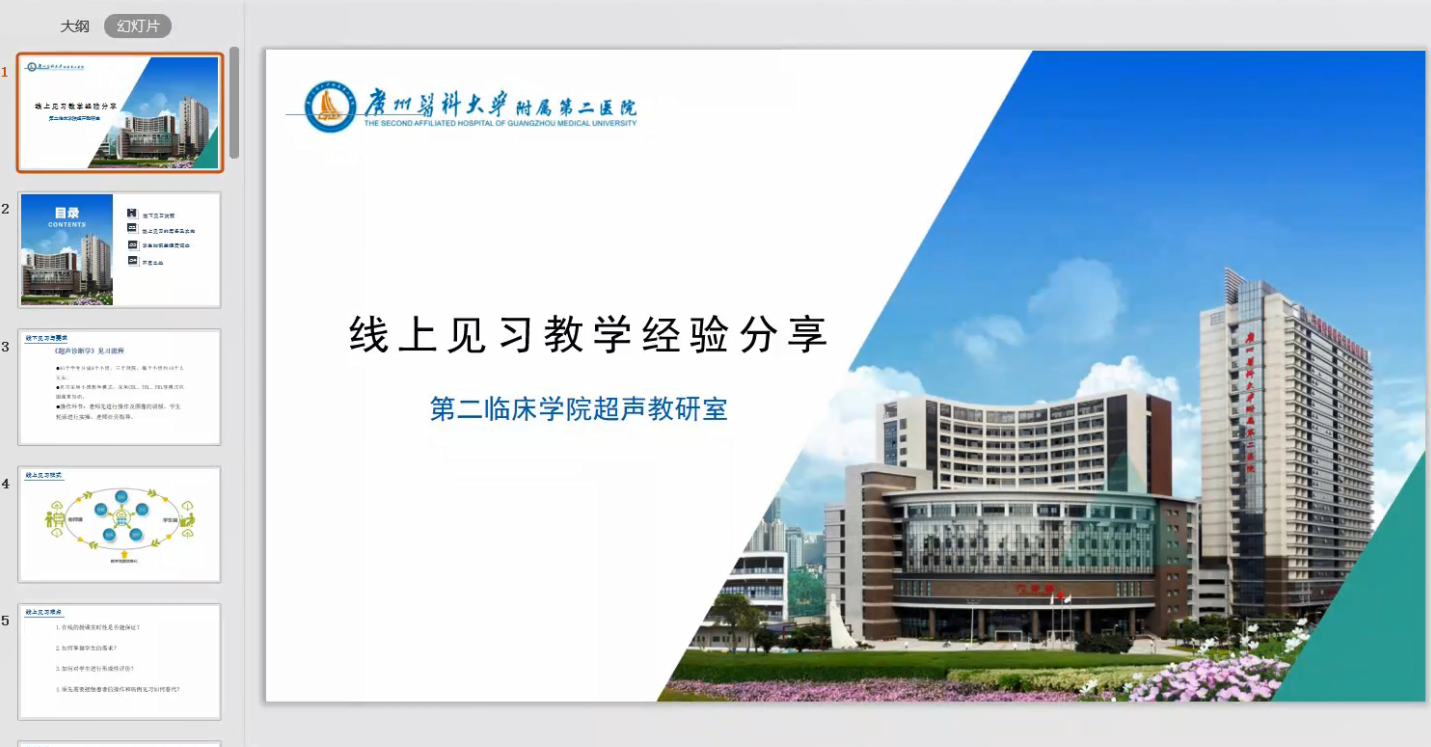 本次线上沙龙由第二临床学院超声教研室祝志敏老师担任主讲嘉宾,在新冠肺炎疫情期间第二临床学院超声教研室积极探索,及早筹划,根据学科特点和见习课的要求,率先通过网络平台组织进行线上的见习教学。祝老师从线上线下见习的对比、线上见习课的筹备与实施、学生知识掌握度调查及形成性评价、线上见习不足及解决办法等四个方面进行线上见习教学经验分享。他着重介绍了见习课的实施过程,结合翻转课堂、小组讨论等形式充分调动学生线上学习积极性,通过形成性评价对学生进行评价。最后,祝志敏老师表示开展线上见习课是一个新的授课模式,充满着机遇和挑战,希望各教研室能团结协作,通力配合,结合年级、学科专业的特点,探索出更合适的线上见习教学模式。