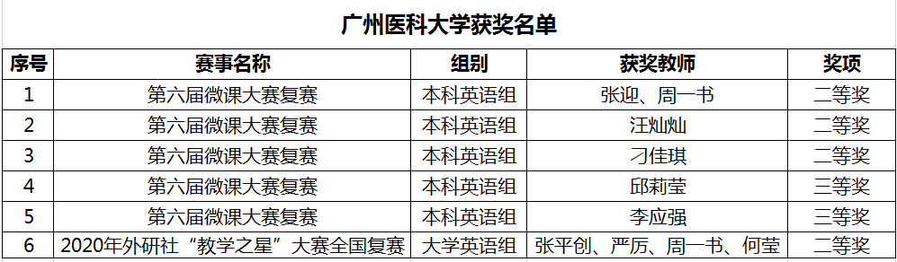 日前,由中国高等教育学会、高等教育出版社以及教育部高等学校大学外语教学指导委员会共同举办的“2020年全国高校教师创新大赛——第六届外语微课大赛”复赛结果公布。我校推荐的五个作品荣获本科英语组二等奖3项,三等奖2项。此外,外语部教师张平创等四位老师组成的教学团队在2020年度外研社“教学之星”教学设计大赛全国复赛中荣获二等奖。