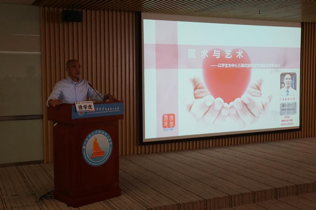 在临床教学师资培训班中,我校教务处处长、教师教学发展中心主任李建华教授做以“全面推进课程思政,教书育人同向同行”的专题讲座,护理学院徐学虎教授,第二临床学院徐米清、刘翔教授分别为学员做了“医术与艺术——以学生为中心的三幕式结构医学课程及教案设计”、“病史采集与病历书写”、“如何做好理论课与实习的衔接”的专题讲座,专家们精彩的讲座赢得了学员们的热烈掌声。
