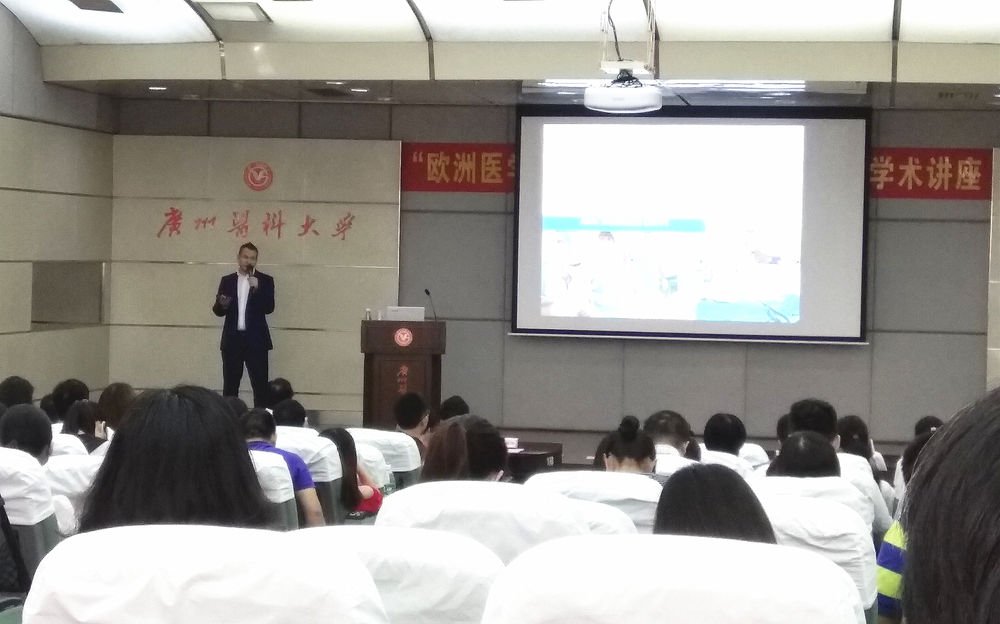 讲座由学校临床技能实验中心副主任吕建平教授主持,教务处郑建民副处长出席了讲座。在2个多小时的讲座中,Lukas教授从欧洲医学教育模拟教学现状和Alpha 模拟医学教育中心模拟教学开展的情况出发向参加的临床教师介绍了欧洲医学教育模拟教学的概况与发展趋势,特别强调当前欧洲模拟教学已从个人训练发展到团队模拟情景教学,以更好的满足临床医师对培训的需求,提升模拟教学的质量。讲座结束后,lukas教授与参训的临床教师进行了互动交流,就医学教育模拟教学师资的培训及模拟教学对医学生临床技能学习质量的影响等问题展开了热烈的讨论。通过本次讲座培训,使我校教师了解了医学教育模拟教学的发展趋势,推进了学校模拟医学教学改革的进程。