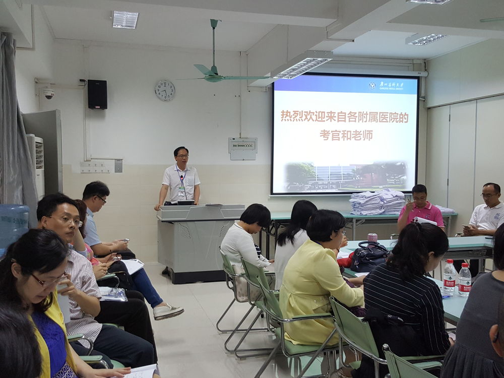 为了保证考试质量,严把考核质量关,学校从各附属医院抽调32名骨干医师作为此次考试的考官,其中绝大部分考官都是历年来参加广州医科大学毕业技能考核、临床医学技能竞赛的考官,具有丰富的临床经验并熟悉临床操作技能的规范。