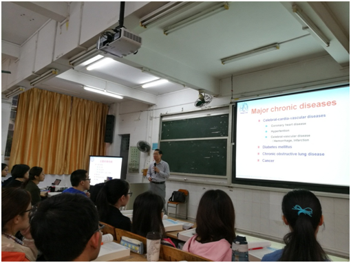 钟院士上周刚刚从北京参加两会回来,他长期在教学、医疗、科研一线工作,每年坚持为本科生授课。已年届80的他精神矍铄、声音洪亮,全程采用全英教学,PPT中英对照双屏幕展示。第一节课院士从什么是内科学、内科学进展、如何学好内科学、医学未来的发展等四个方面引领同学们迈入内科学学科的殿堂;介绍了未来精准医学、个性化医疗的发展。第二节课则结合多年丰富的临床经验,以详实的数据和案例,以呼吸系统的结构引入、介绍了病因病机、疾病的危害和预防等等,为同学们开始呼吸系统的学习打下基础。
