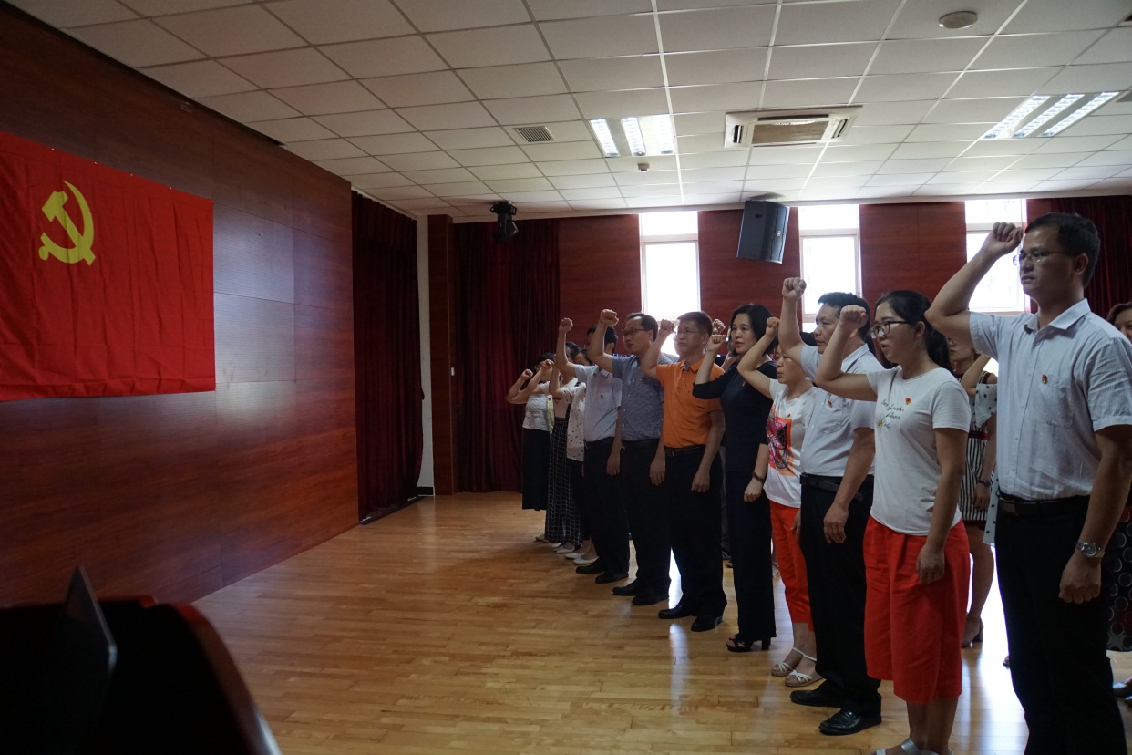 为认真学习领会党的十九大精神,学习贯彻习近平新时代中国特色社会主义思想,激励党员干部进一步解放思想、改革创新,落实支部主题党日活动,扎实推进学校党委、机关总支关于“党支部建设年”的工作要求,5月31日下午学校领导罗健东副校长参加了机关四支部主题党日活动,与支部全体党员一起在党旗下重温入党誓词,增强了党员的党性观念,激励每一位党员以党章规范自己的言行,牢记党的宗旨,立足岗位奉献,履行党员义务,做一名称职的,合格的,无悔于党员称号、无悔于入党誓词的真正的共产党员。